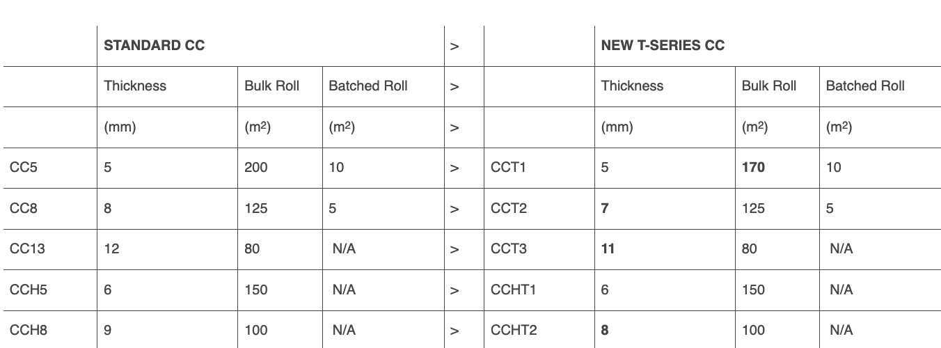 CC products are the first GCCMs to meet the International Specification Standard for GCCMs – ASTM D8364. The new T-series product range (T1, T2, T3) is engineered to align with the ASTM classification levels (Type I, II, III) to make specifying the right product even easier. Using the ASTM Specification Standard helps protect specifiers and customers and ensures they get the right product for the right application.